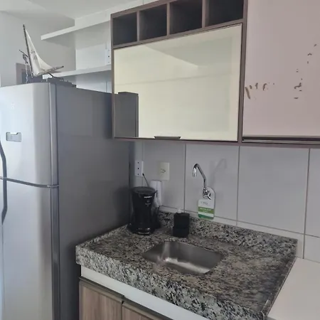 Apartamento 02 Qts Vista Mar, Ar condicionado! tem cozinha totalmente equipada, e confortos como máquina de lavar e controle de temperatura.